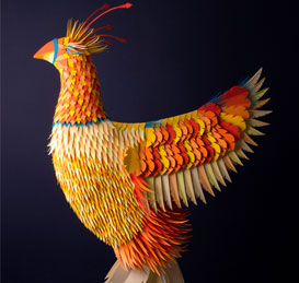 Il risultato è una opera d’arte fatta di carta che ha come immagine il mitologico uccello che rinasce dalle proprie ceneri. La fenice ha più vite come può avere la carta, se riciclata. Questo è il messaggio!